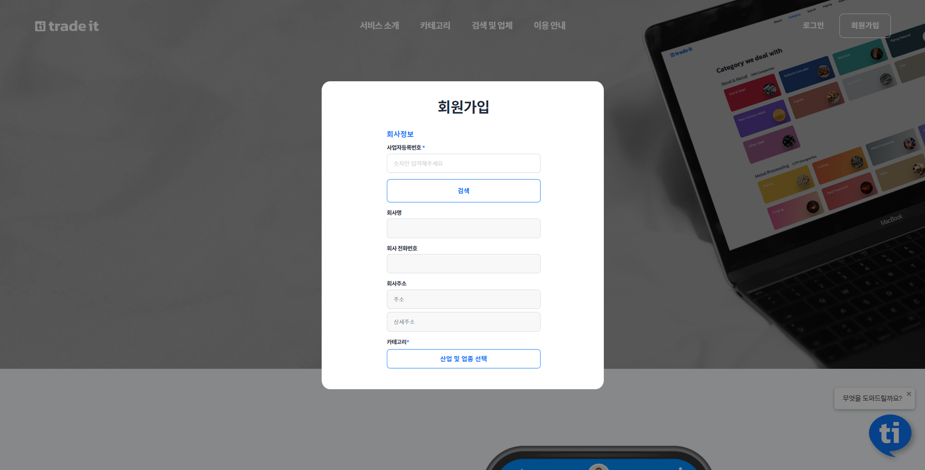사업자 등록번호 및 회사 정보 입력